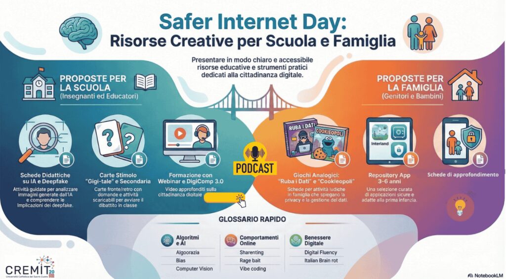Anche l’UNICEF ricorda che più di 1 studente su 5 di 10 anni in 26 Paesi su 32 non è in grado di distinguere se un sito web sia affidabile o meno e dedica la giornata al tema “Smart tech, safe choises: exploring the safe and responsible use of AI” (Tecnologia intelligente, scelte sicure: esplorare l’uso sicuro e responsabile dell’IA) perché la tecnologia, se usata con attenzione e ponderazione, può essere di supporto ai bambini.