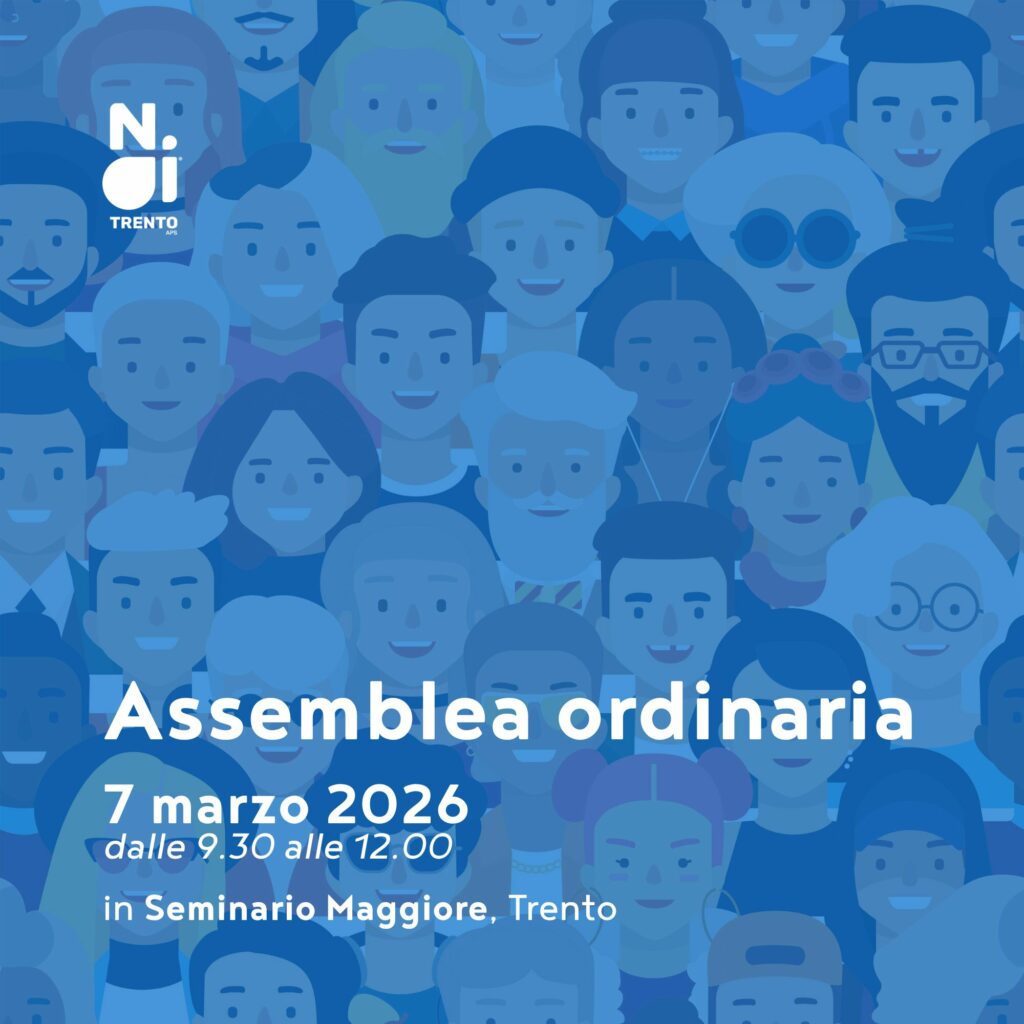 Il Consiglio Direttivo di Noi Trento convoca per sabato 07 marzo alle ore 9.30, presso l’Aula Magna del Seminario Maggiore di Trento, i propri Oratori e Circoli affiliati alla prossima Assemblea Ordinaria, per l’approvazione del rendiconto economico-finanziario 2025.