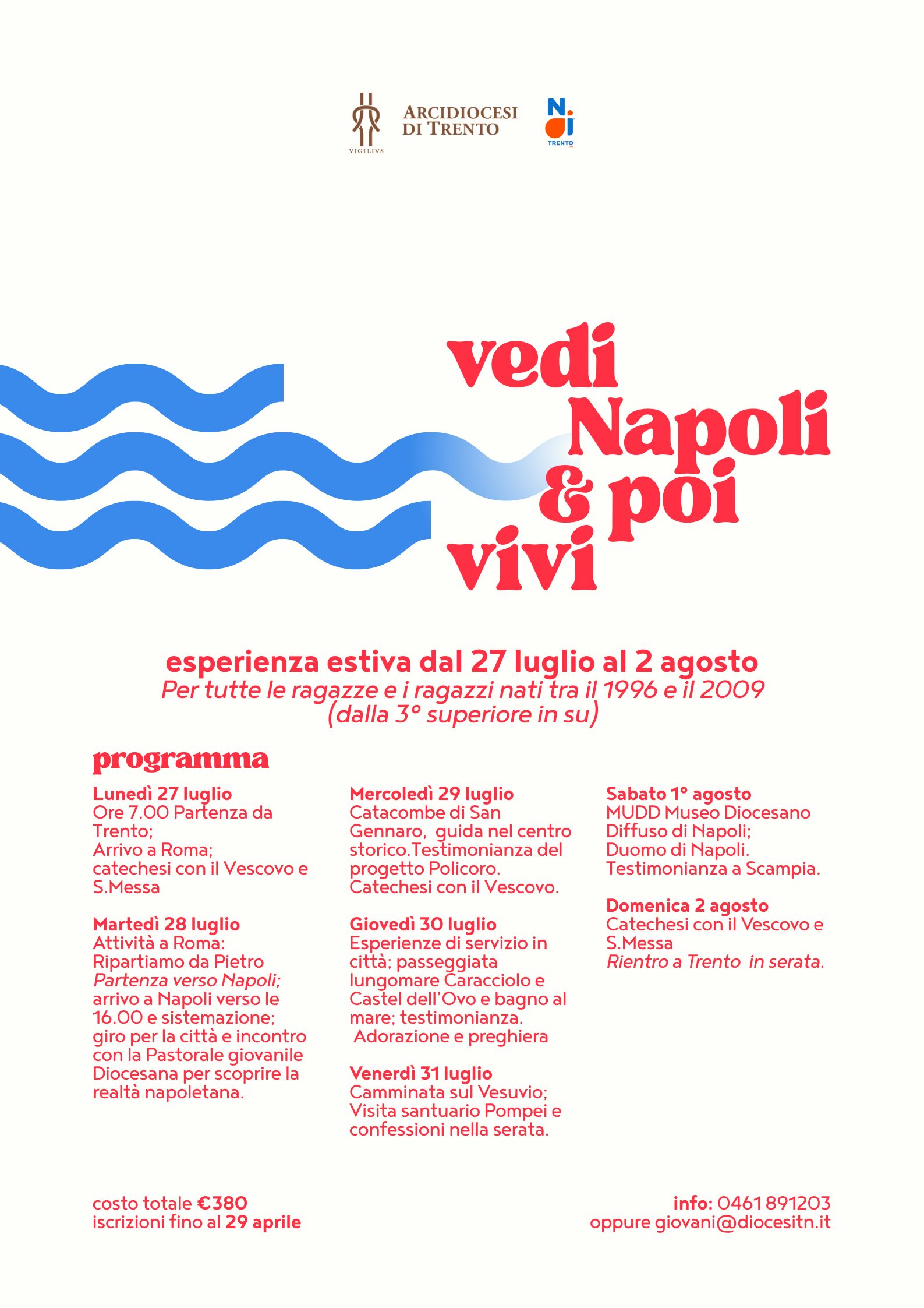 Esperienza estiva per giovani dai 17 ai 30 anni da lunedì 27 luglio a domenica 2 agosto a Napoli, accompagnati dal vescovo Lauro: un percorso di scoperta, condivisione e crescita nella fede.